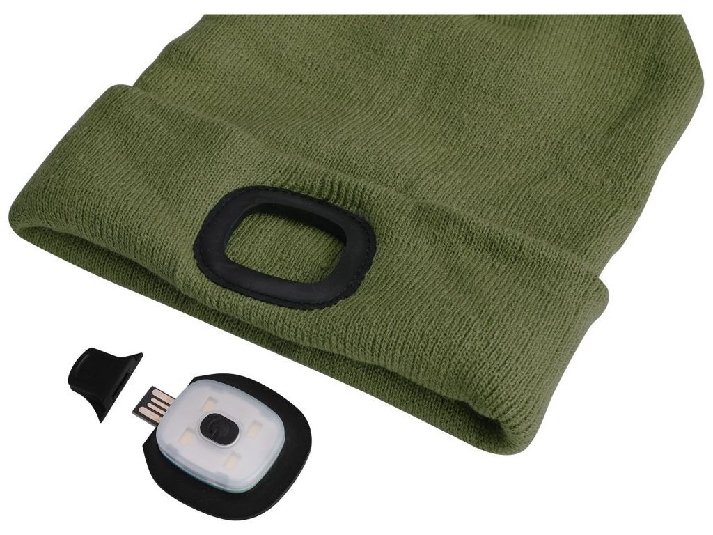 čepice s čelovkou 4x45lm, USB nabíjení, tmavě zelená, univerzální velikost