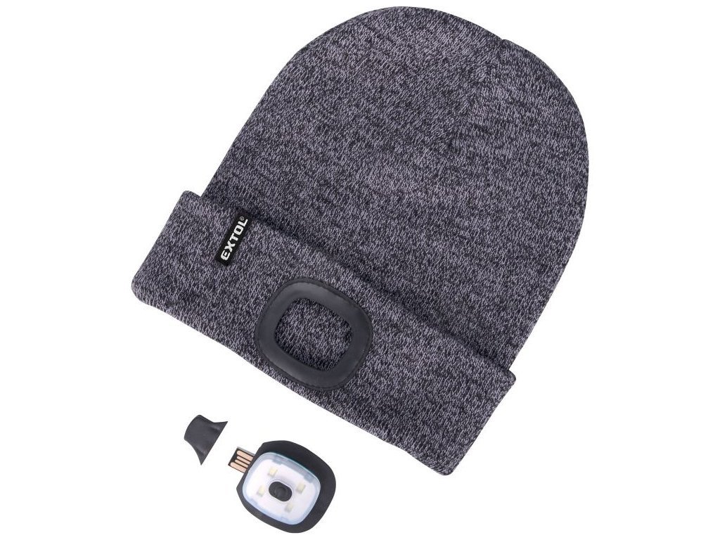 Čepice s čelovkou 4 x 45 lm USB nabíjení šedá/černá EXTOL LIGHT