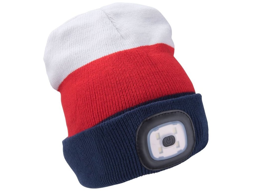 čepice s čelovkou 4x45lm, USB nabíjení, bílá/červená/modrá, univerzální velikost