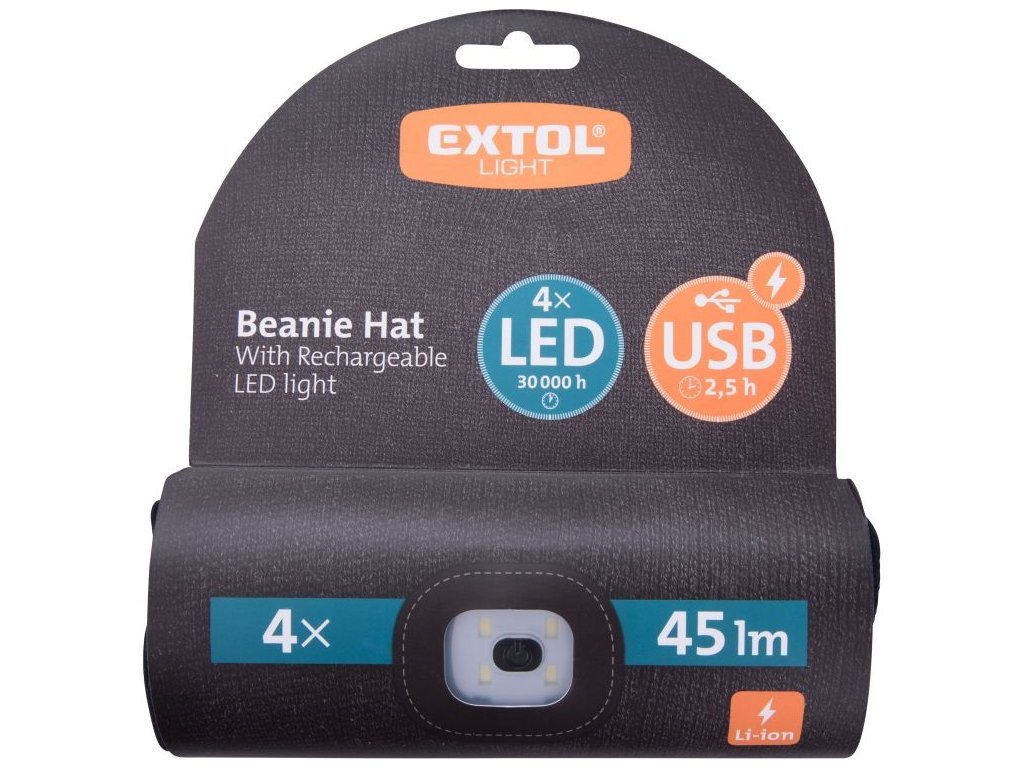 Čepice s čelovkou 45lm, nabíjecí, USB, černá, univerzální velikost EXTOL LIGHT