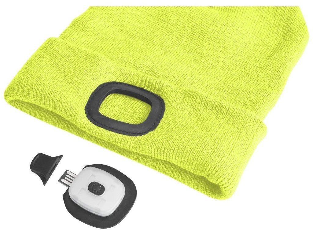 čepice s čelovkou 4x45lm, USB nabíjení, fluorescentní žlutá, univerzální velikost