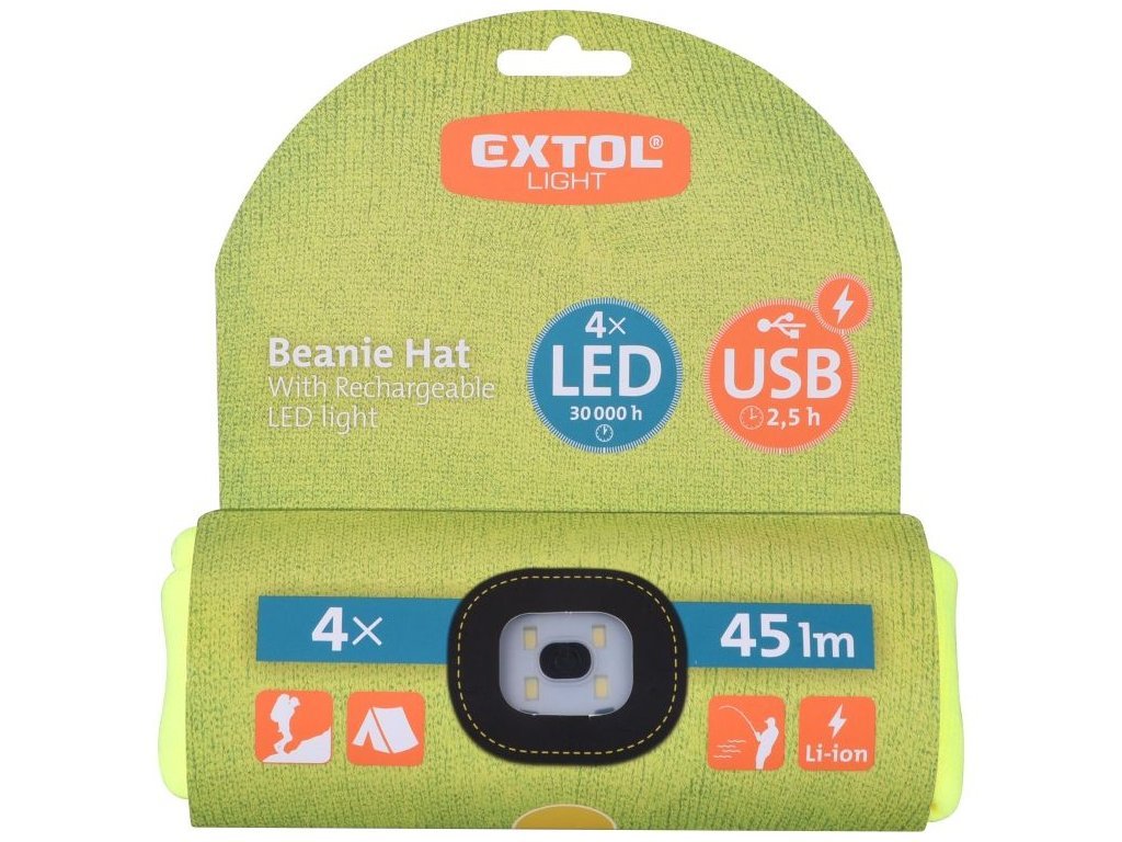 Čepice s čelovkou 45lm, nabíjecí, USB, fluorescentní žlutá, univerzální velikost EXTOL LIGHT