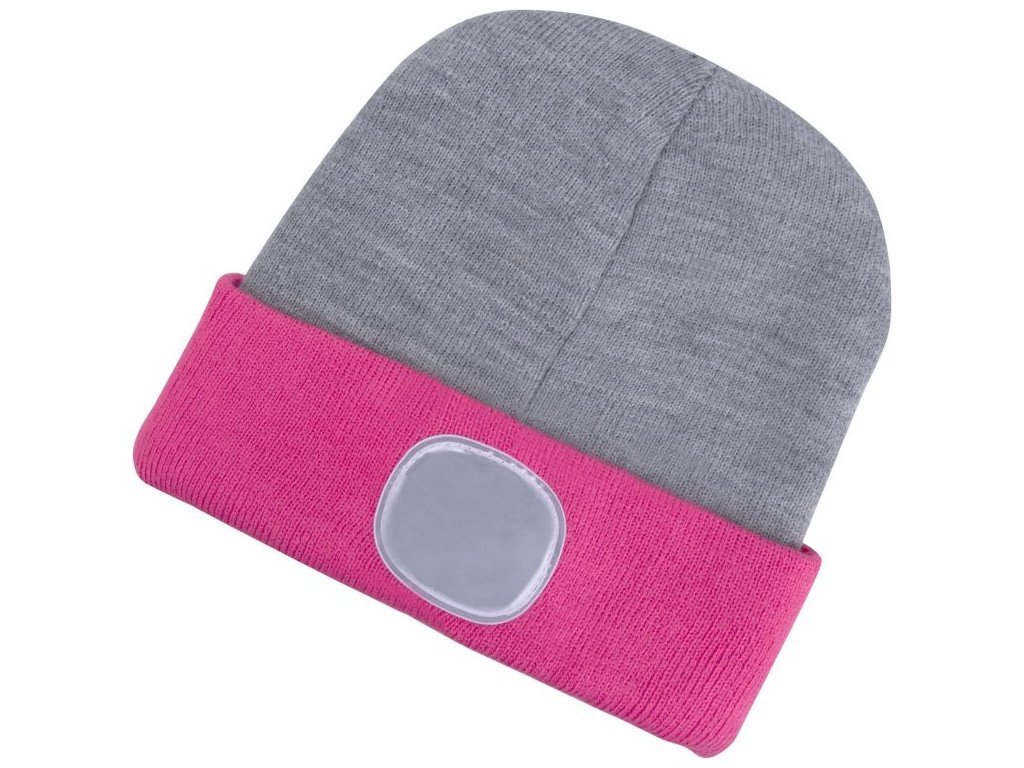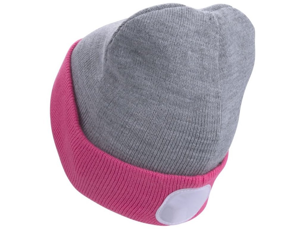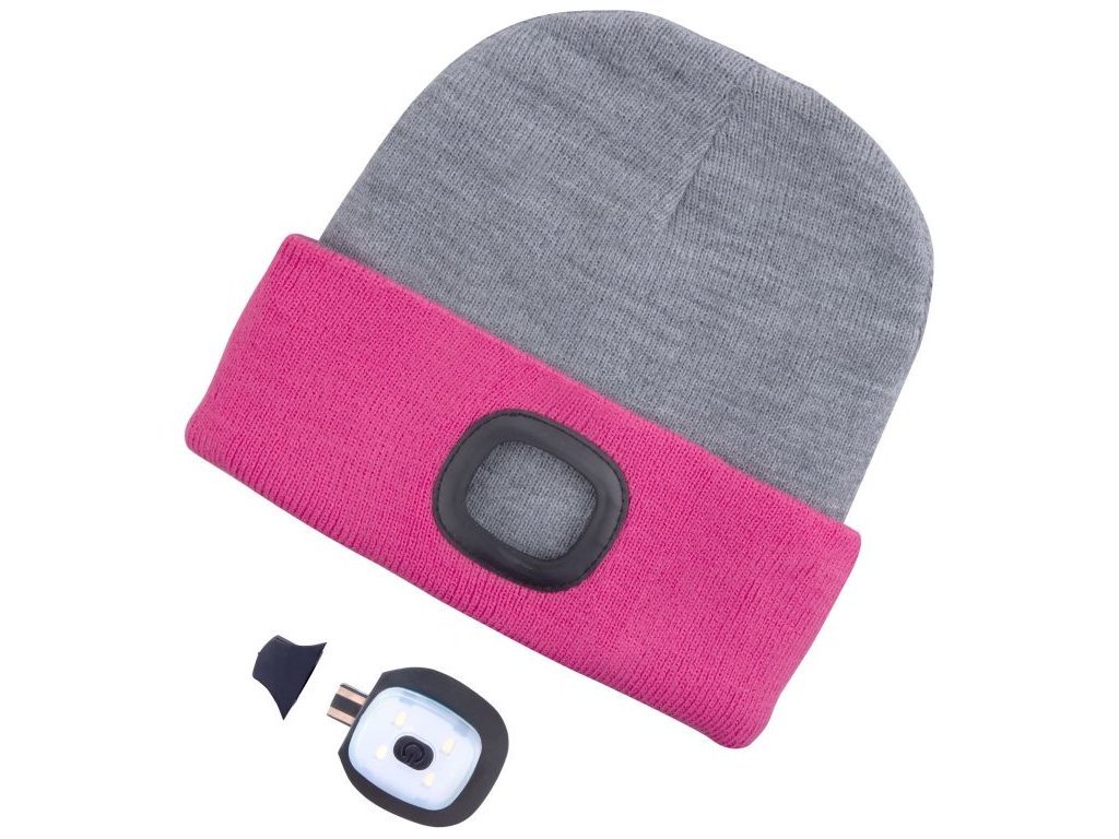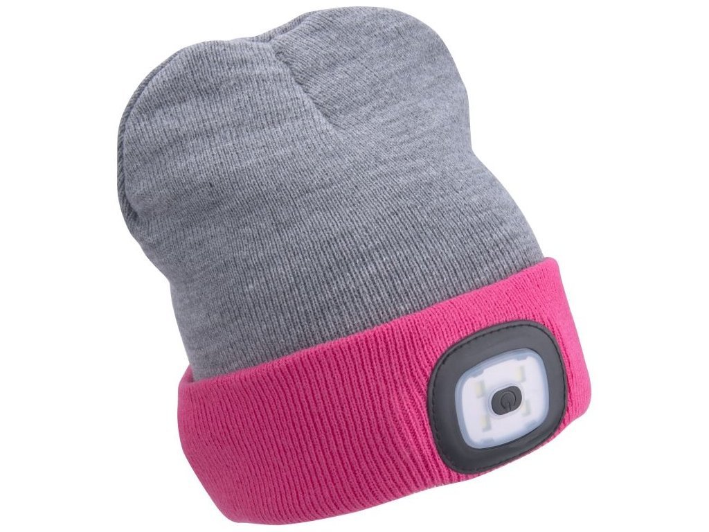 čepice s čelovkou 4x45lm, USB nabíjení, světle šedá/růžová, oboustranná, univerzální velikost