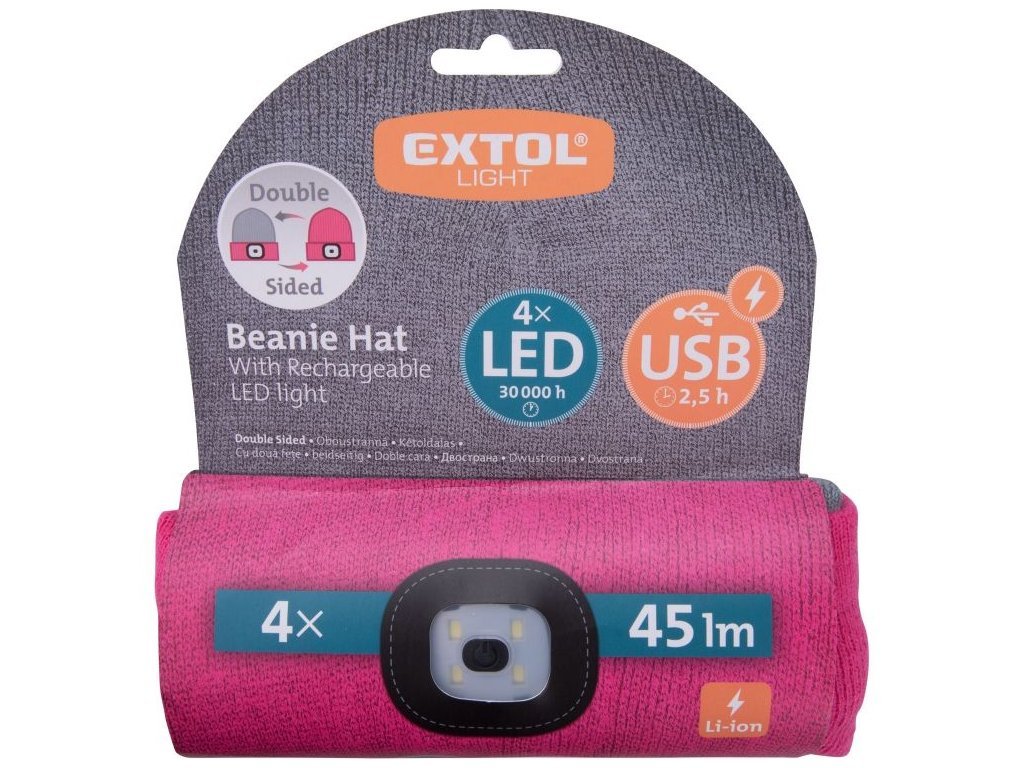 Čepice s čelovkou 45lm, nabíjecí, USB, světle šedá/růžová, oboustranná, univerzální velikost EXTOL LIGHT