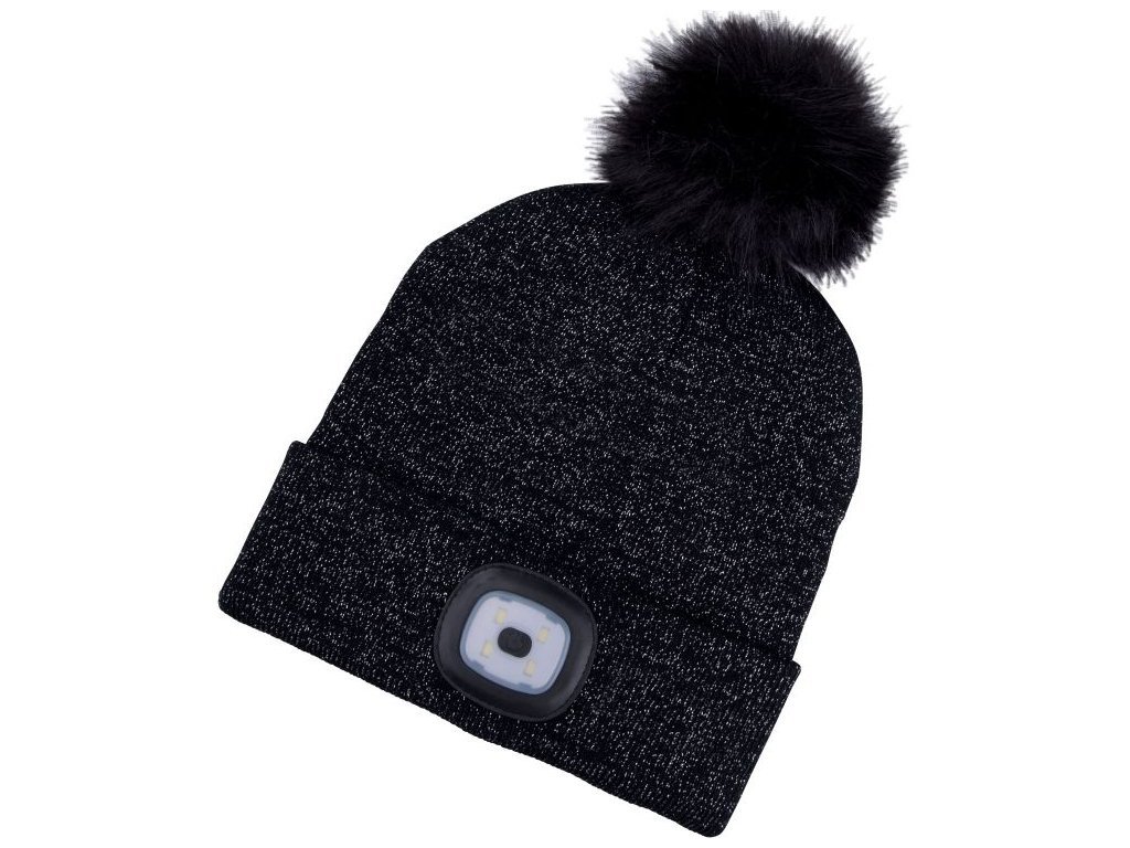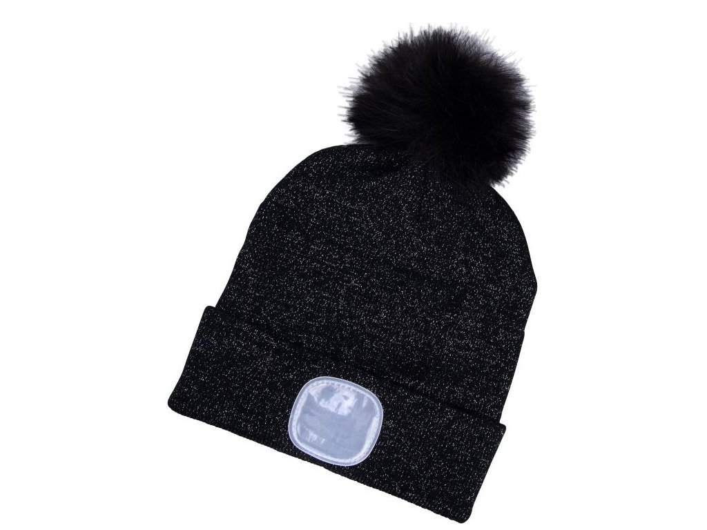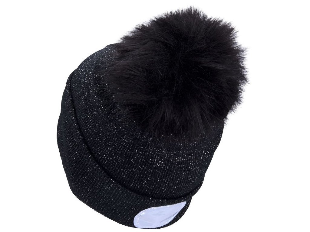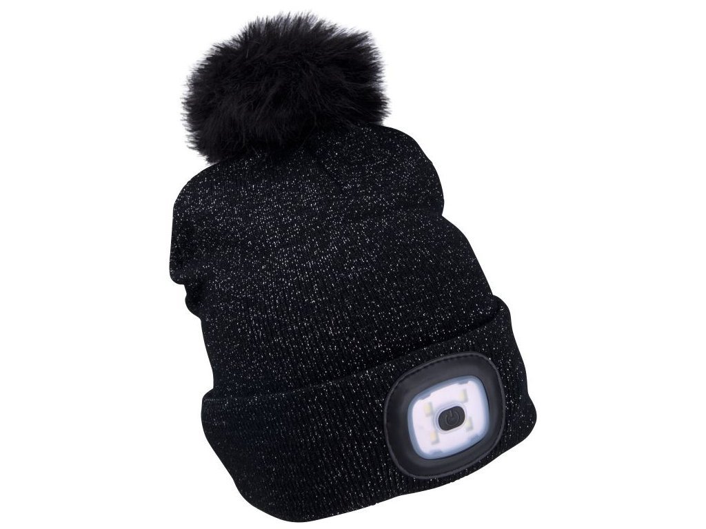čepice s čelovkou 4x45lm, USB nabíjení, černá se třpytkou a bambulí, univerzální velikost