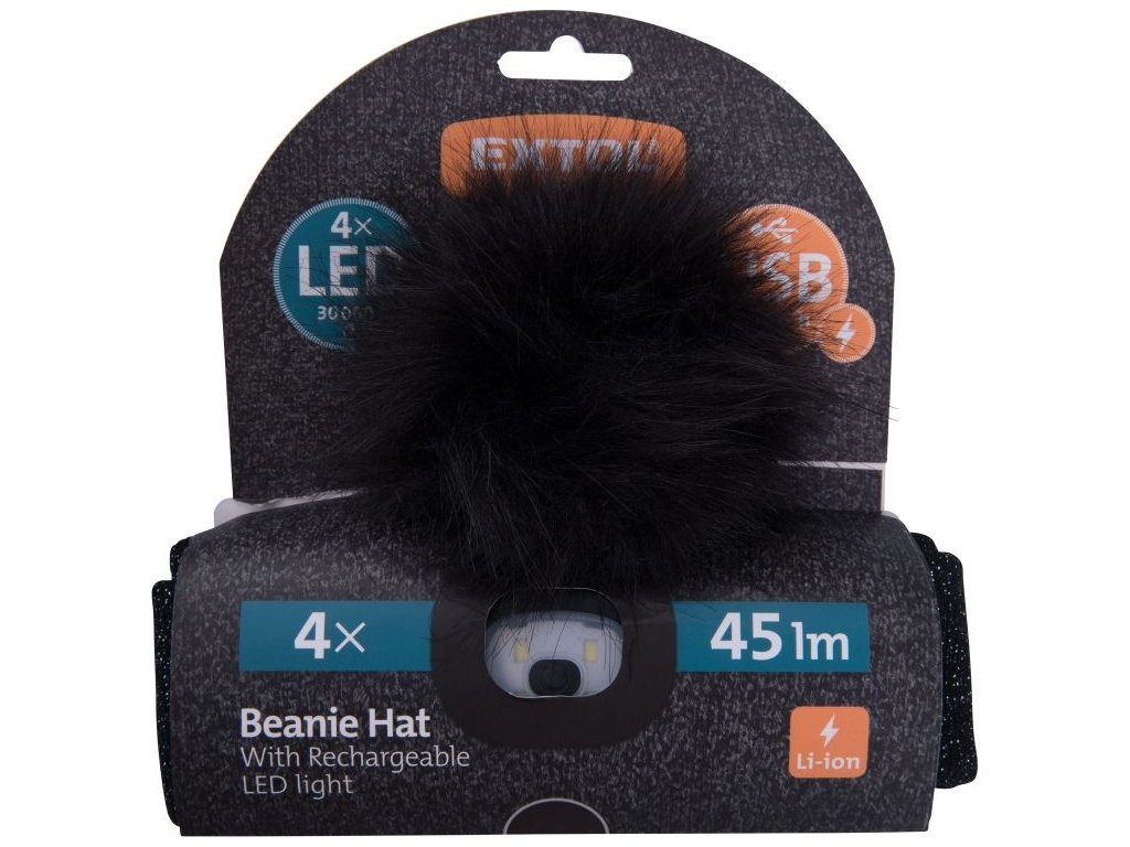 Čepice s čelovkou 4x45lm, nabíjecí, USB, černá se třpytkou a bambulí, univerzální velikost EXTOL LIGHT