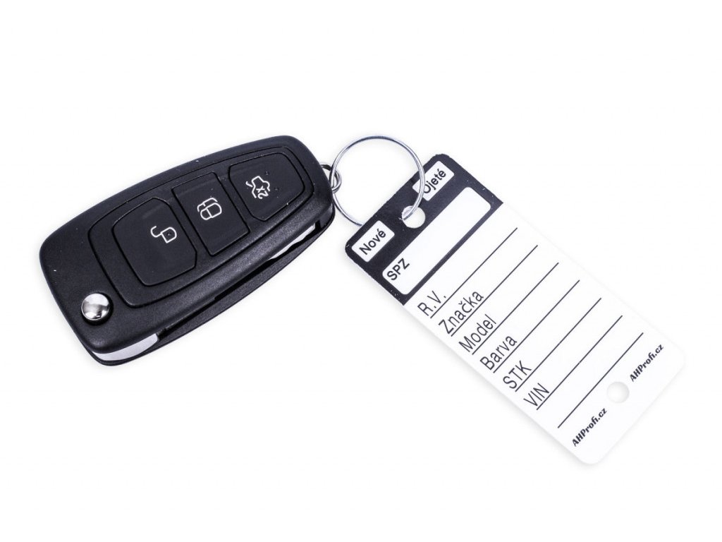 Bílé plastové visačky na klíče s černým potiskem jsou velkou pomůckou převážně pro autobazary, případně autosalony pro snadnou identifikaci klíčů. Jednoduše pak poznáte, kterému autu klíček patří díky vyplněným polím na jmenovce. Permanentním fixem, který je přiložen jako dárek, napíšete na cedulku na klíče SPZ, rok výroby, značku, model a barvu vozu. Datum STK a VIN, zaškrtnete zda se jedná o nové či ojeté vozidlo. Použitím permanentního fixu nemusíte řešit smývání, ušpiněné prsty apod. Na klíče připevníte rozlišovač za pomoci přiloženého kroužku, což může být o trochu složitější než instalace u modelů Easy-ON, nebo Econo ID.