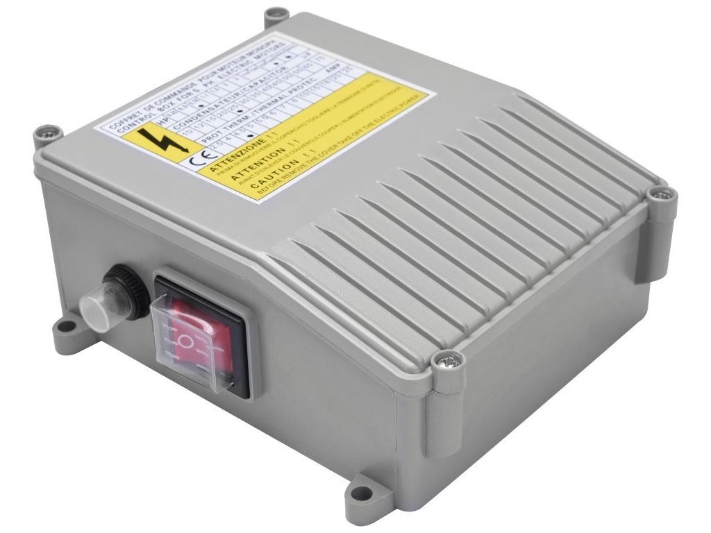 - kondenzátor, ochrana proti přetížení a spínač jsou umístěné v oddělené krabici