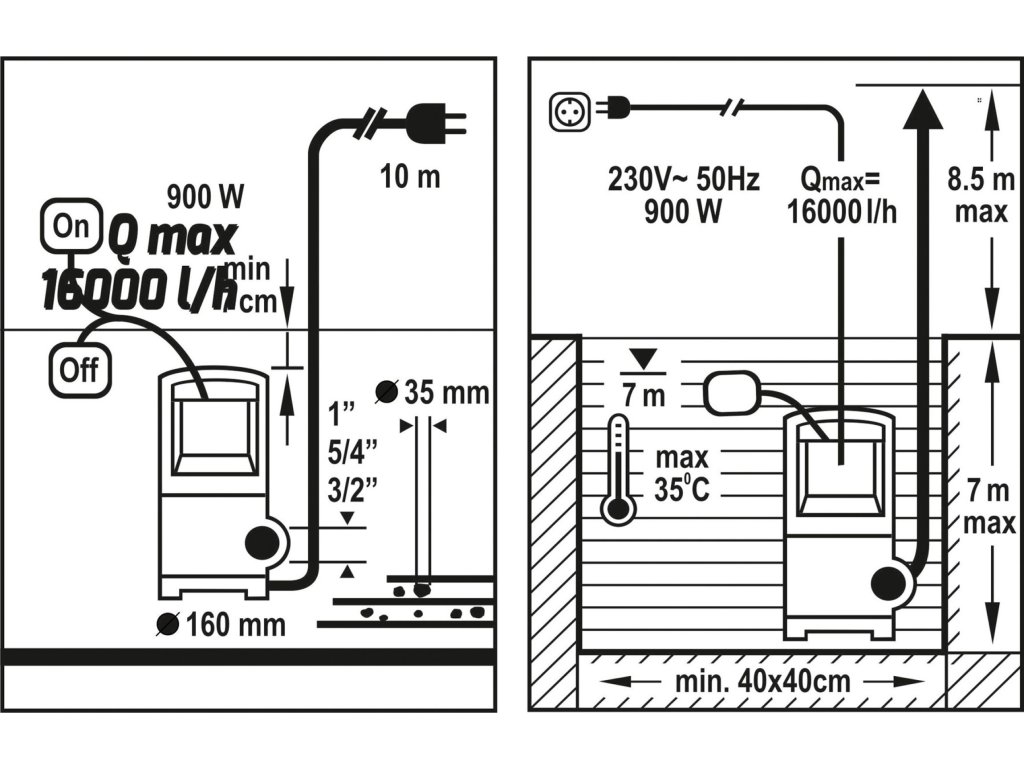 Ponorné čerpadlo pro čistou i kalnou vodu o výkonu 900W.