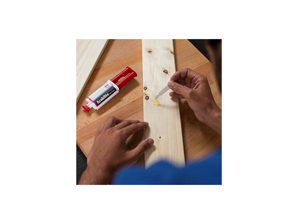 Dvousložkové epoxidové lepidlo, složeno z pryskyřice a vytvrzovací složky, které po smíchání reagují.