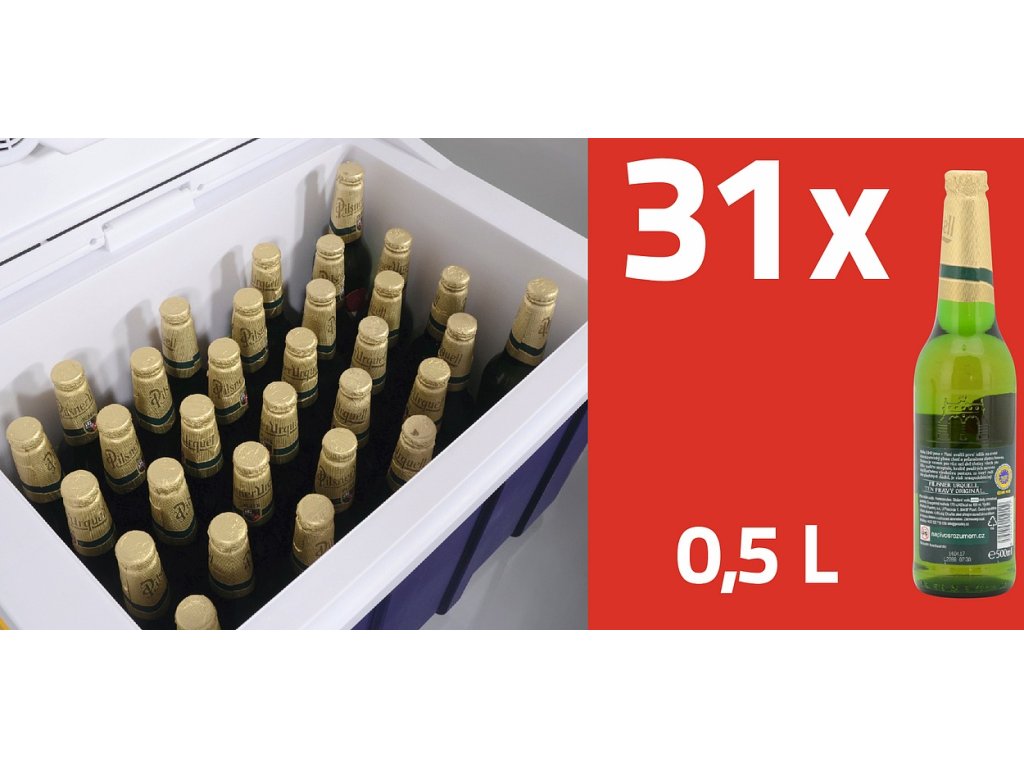 Vnitřní objem 50 litrů pojme velké množství potravin. Do chladicího boxu lze pohodlně umístit i 2L lahve s nápojem. Pohodlně také pojme 31 lahví piva (0,5L).