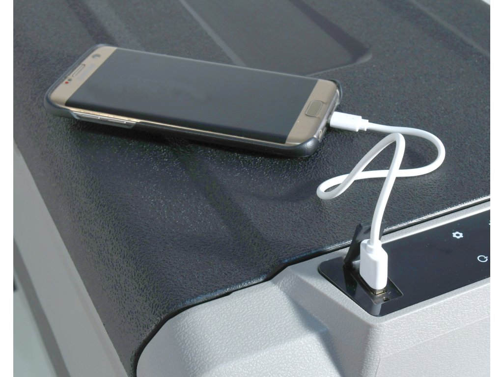 Vnější plášť je proveden z odolného plastu šedé barvy, který spolu s perfektní PU izolací zajišťuje dlouhodobé zachování stabilní teploty uvnitř boxu a zaručuje velmi nízkou spotřebu energie. Okraj ovládacího panelu je doplněn o krytou USB zásuvku pro napájení zařízení s USB konektorem.