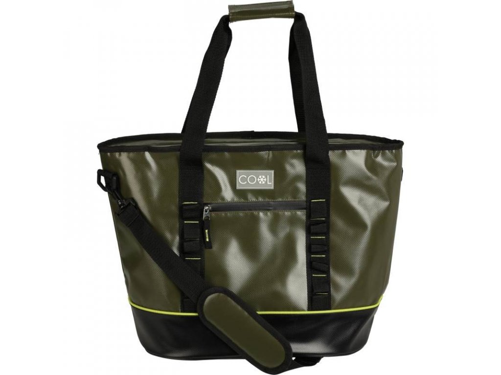 SHOPPING COOLER BAG, 26LTR SIZE 510X240XH340MM, VINYL WATERPROOF FABRIC IN PANTONE 17-0115 GREEN COLOUR, PIPING IN GREEN PANTONE 382C, WITH OUR COOL LOGO, ONE MAIN DOUBLE ZIPPERED POCKET, ONE FRONT POCKET WITH SINGLE ZIPPER, GREY PEVA LINING, 6MM PE FOAM INSIDE, WITH TWO BLACK WEBBING HANDLES WITH VELCRO GRIP, WITH ADJUSTABLE SHOULDER STRAP WITH PAD, WITH BIG HANGTAG/ 520X360X65MM, Hangtag (HT21) / CFT 3,01,(10.800/40ft HQ)Doplňkové parametry