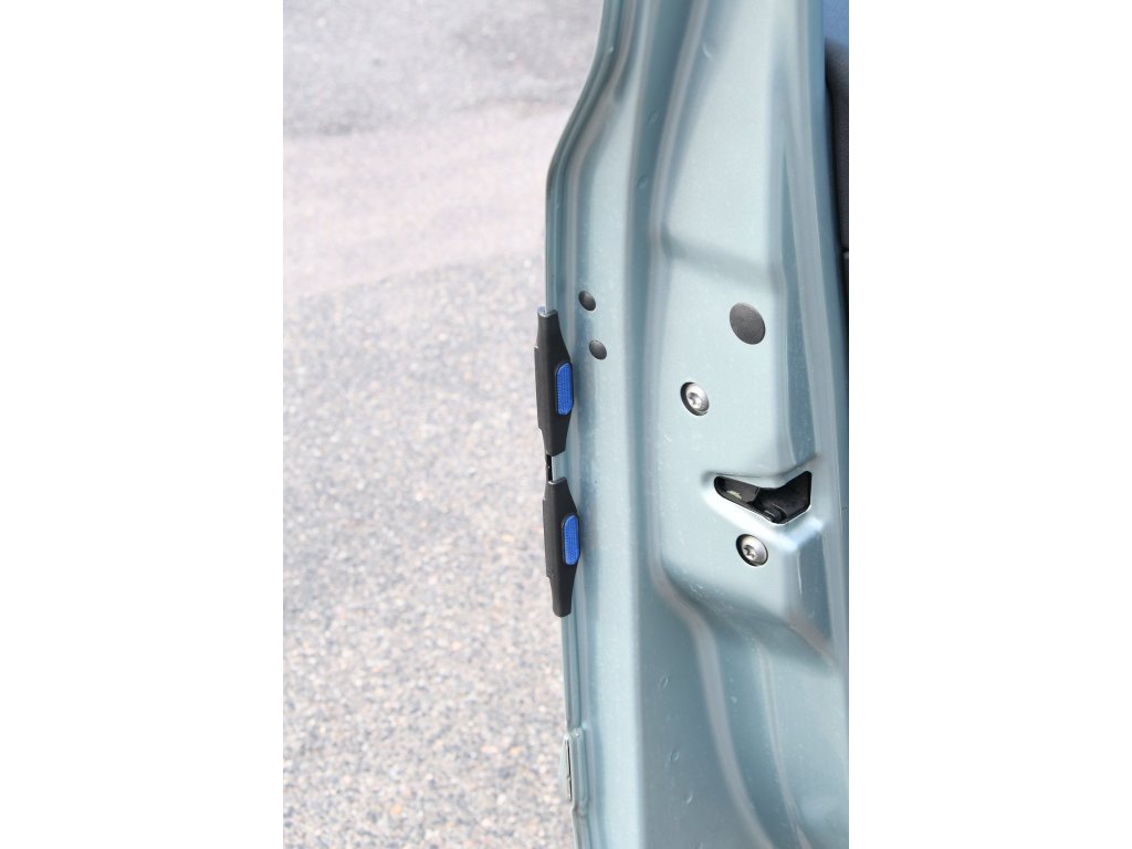 K připevnění není třeba žádného nářadí, chrániče se pouze nasadí na hranu dveří vozidel, lze nasadit i na tvarovaná místa.