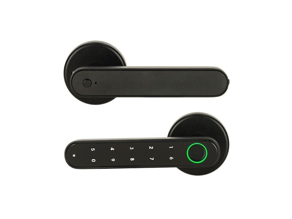 Elektronický dveřní zámek - zabezpečení každé domácnosti. Zámek lze otevřít několika způsoby: otiskem prstu, heslem, tradičními klíči nebo prostřednictvím aplikace. Abyste mohli naprogramovat heslo nebo přidat otisk prstu, musíte si stáhnout aplikaci Tuya Smart (QR kód v návodu). Aplikace navíc nabízí náhled na historii otevírání zámku a také možnost nastavit dočasné heslo platné pouze na několikhodin. Můžete nastavit jedno nebo dvoufázové ověření. Rukojeť funguje přes Wi-Fi. Napájení čtyřmi AAA bateriemi (nejsou součástí balení). Ideální pro domácnost, kancelář a další místa, která chceme chránit před nežádoucími hosty.<BR/><BR/> Technické parametry:<BR/><BR/>Materiál: hliník<BR/>Černá barva<BR/>Možnosti otevření zámku: 4 (otisk prstu, heslo, klíč, aplikace)<BR/>Maximální počet otisků prstů: 30<BR/>Maximální počet hesel: 50<BR/>Provozní napětí: 6V<BR/>Napájení: 4 AAA baterie (nejsou součástí balení)<BR/>Rozměry jedné rukojeti: 16 cm x 6 cm x 6,5 cm<BR/>Rozměry balení: 22,5 cm x 20 cm x 7,5 cm<BR/>Obsah sady:<BR/><BR/>Vnější rukojeť<BR/>Vnitřní madlo<BR/>Zámek<BR/>Slot pro zámek<BR/>Klíče x2<BR/>ŠroubovákDoplňkové parametry