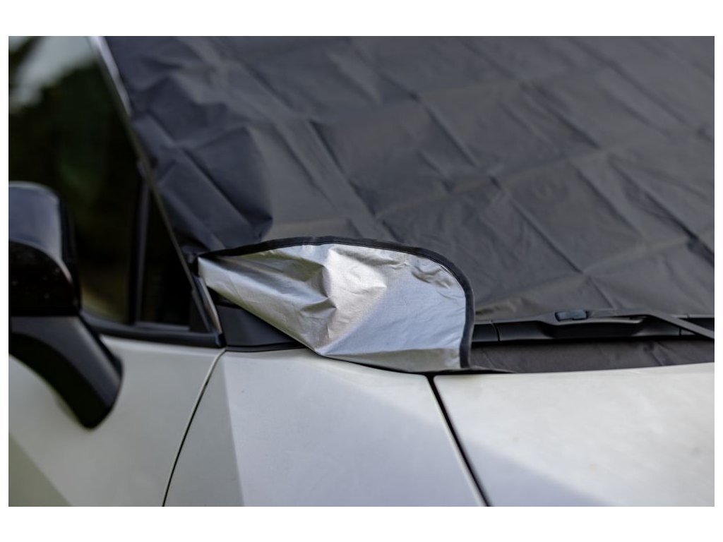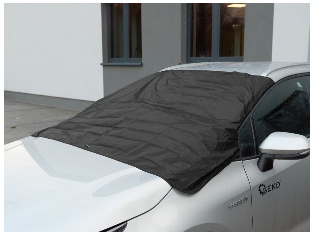 Clona GEKO chrání čelní sklo i v zimě – její černá strana absorbuje sluneční teplo, čímž pomáhá urychlit odmrazování skla a udržet vyšší teplotu v kabině. Vyrobena z voděodolného polyesteru, snadno se upevňuje pomocí magnetů a bočních úchytů, takže ráno už žádné škrábání námrazy.