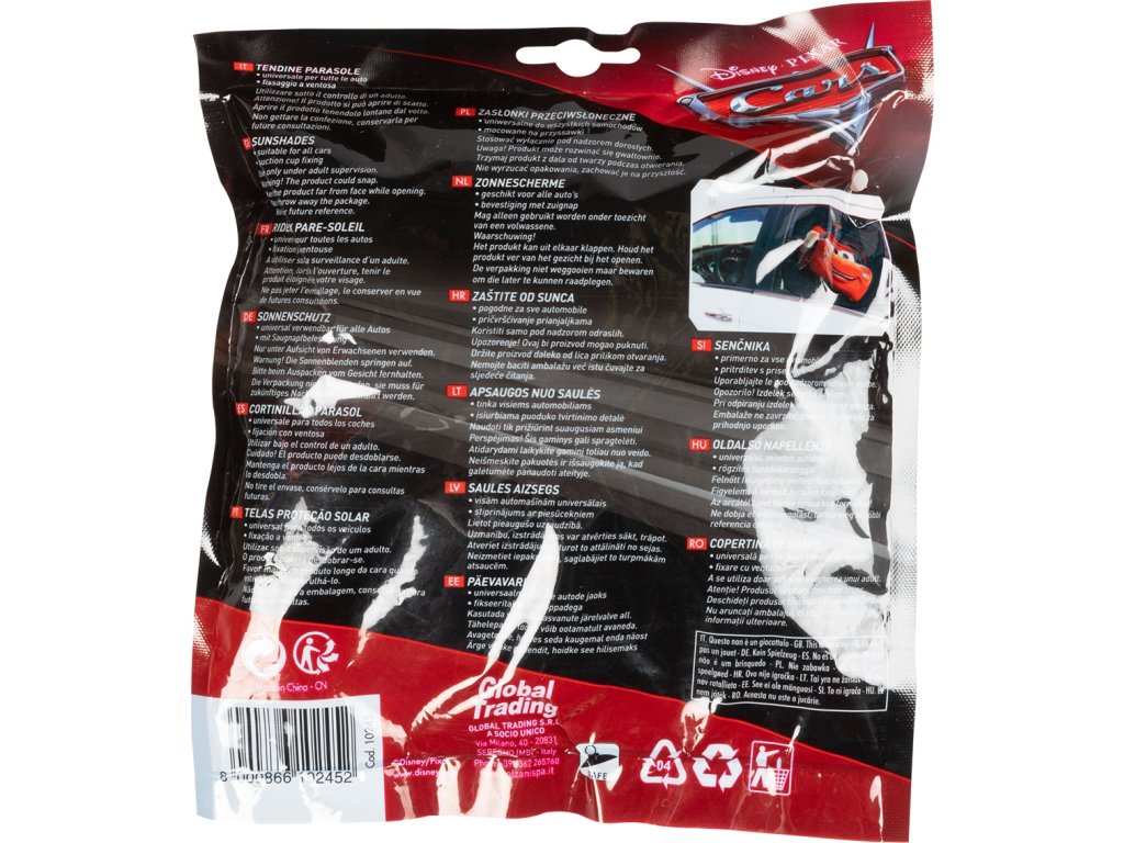 Sluneční clony brání pronikání slunečních paprsků do vozidla. Sada obsahuje 2 ks clonek s dětským motivem Cars. Jsou určeny na zadní, nebo boční skla automobilu.