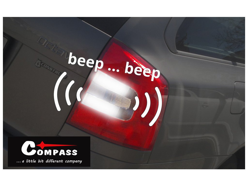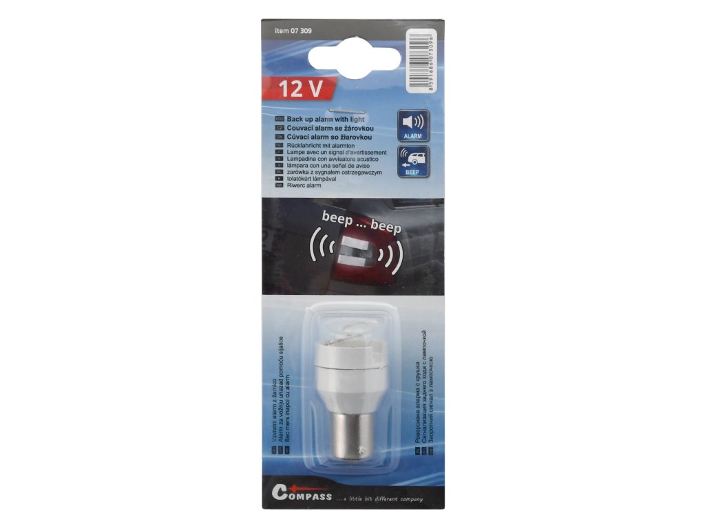 Při couvání vozidla vydává varovný zvukový signál. Univerzální pro automobily s napájecím napětím 12V a žárovkou zpětného světla s paticí BA15s. Couvací alarm je osazen žárovkou 12V (celosklo).
