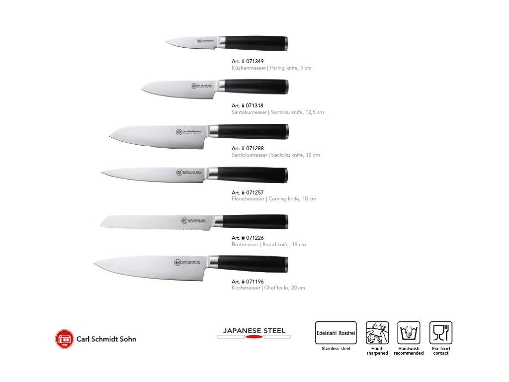 Vysoce kvalitní materiály řady nožů Carl Schmidt Sohn KONSTANZ zaručují perfektní úchop a čistý řez pro nadšené amatéry i profesionály v kuchyni.