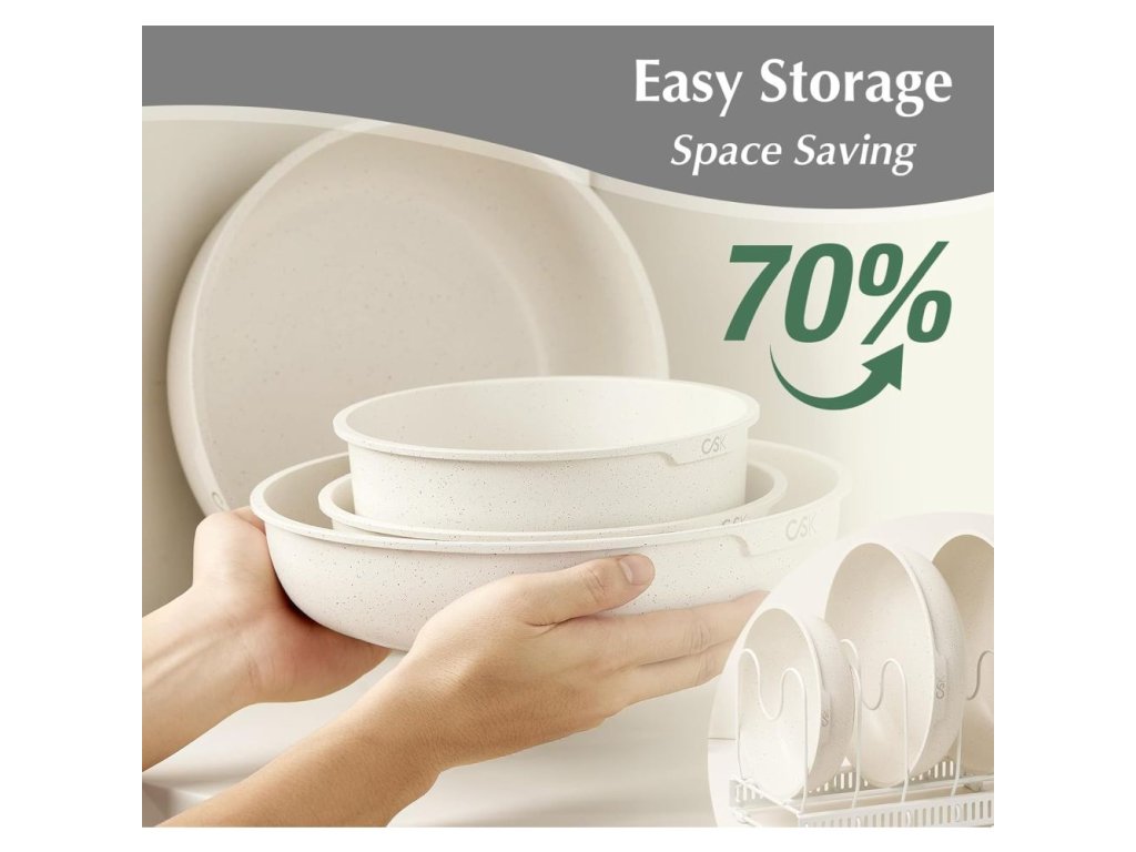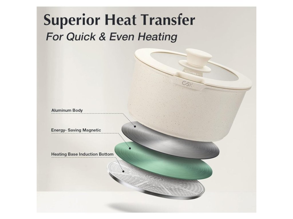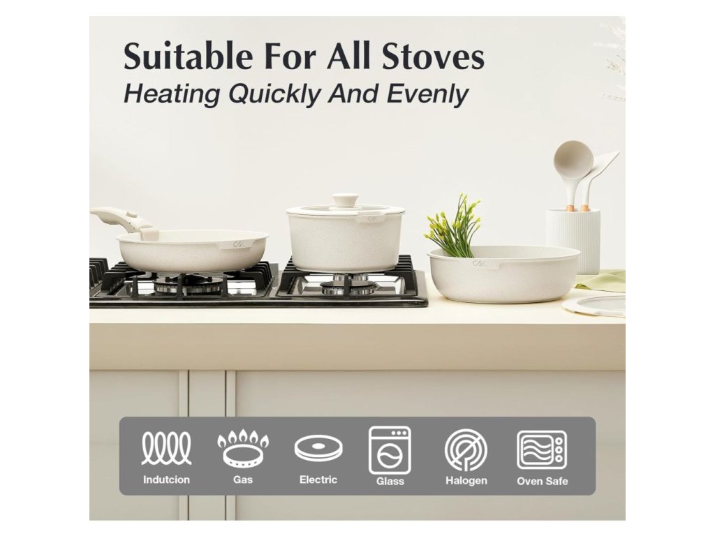 Luxusní design, vynikající nepřilnavý povrch a univerzální použití dělají z této sady ideální volbu pro každého, kdo miluje vaření s elegancí a stylem.