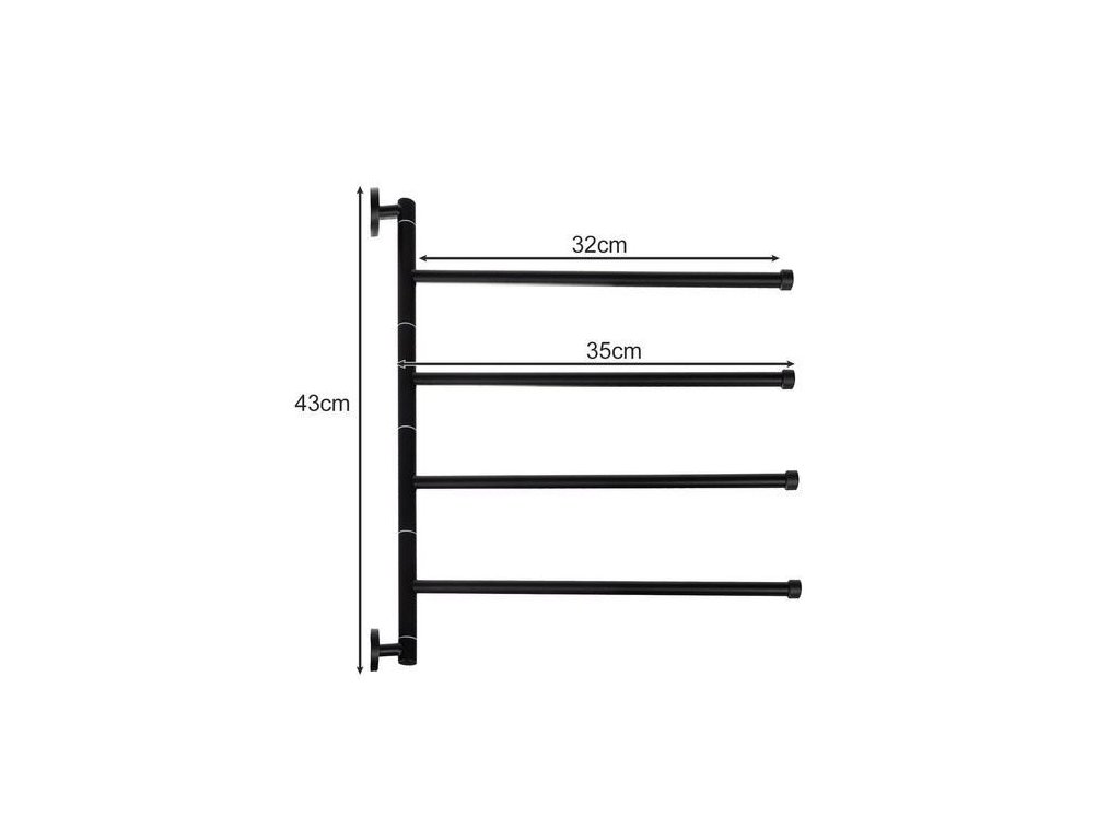 Čtyřramenný věšák na ručníky černý, Ruhhy Koupelnový věšák je praktické zařízení, které vám pomůže udržet v koupelně pořádek a zabere málo místa. Má 4 pohyblivá ramena, která lze nastavit nezávisle na sobě.Věšák se skládá ze čtyř ramen, které pojme zátěž až 2,5 kg , což umožňuje uspořádat více ručníků, oblečení nebo jiných předmětů na jednom místě. Každé rameno lze nezávisle otáčet o 360 stupňů. Ramena jsou od sebe vzdálena 8 cm.