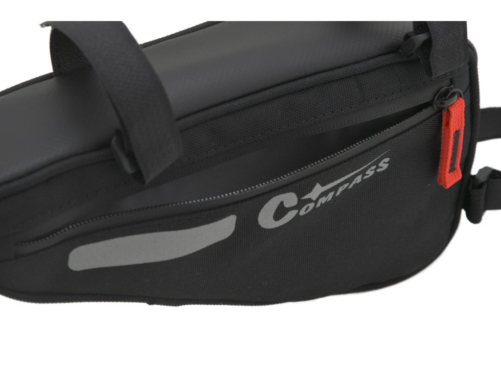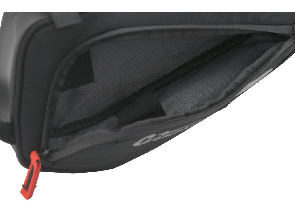 Brašna byla vyrobena z odolného materiálu, je uzavíratelná z boku na zip a uvnitř skrývá prostor pro 1,5 l větších drobností jako je pumpička, svítilna, apod. Z druhé strany je brašna opatřena dalším prostorem pro drobnosti s uzavíráním na zip.