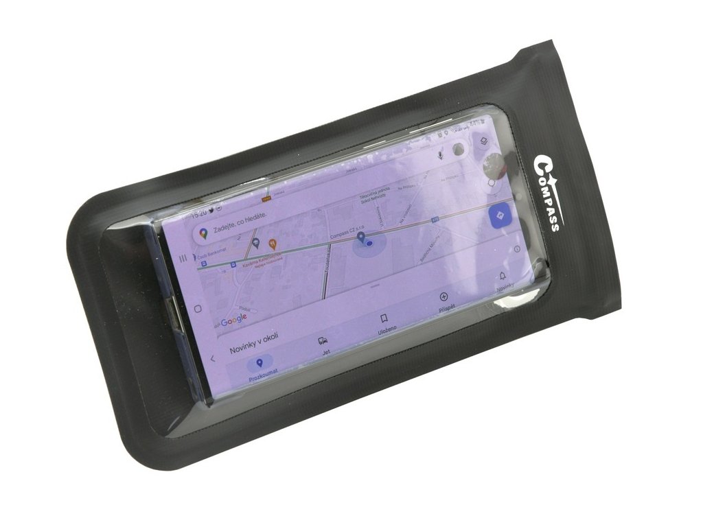 Pouzdro je vhodné k umístění mapy, či mobilního telefonu až do úhlopříčky displeje 6,7" (rozměry pro telefon cca 9 x 18 cm). Fólie na kapse umožňuje ovládání dotykového displeje mobilního telefonu a na zadní strana umožňuje použití foťáku telefonu.