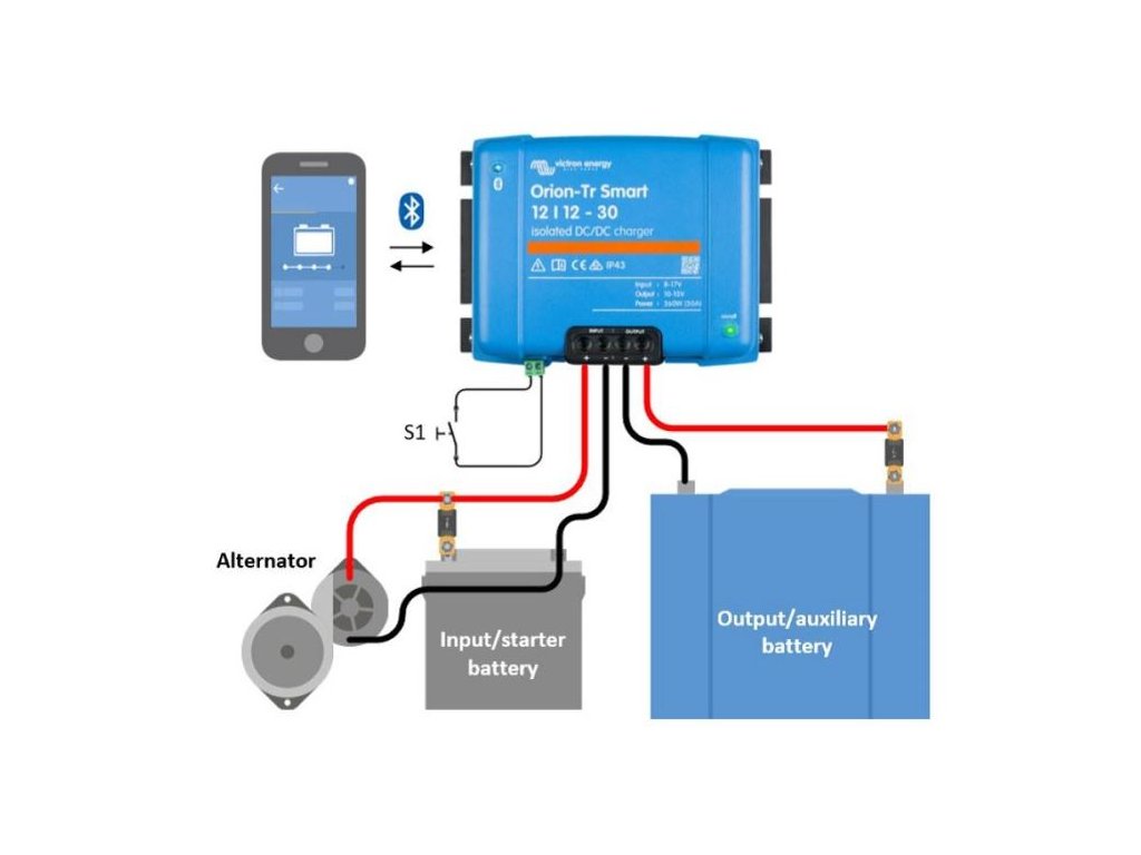 DC-DC nabíječka Orion-Tr Smart 12/12-18A (220W) izolovaná Nabíječka Victron Energy Orion-Tr Smart DC-DC je profesionální DC-DC adaptivní třístupňovou nabíječkou se zabudovanou funkcí Bluetooth.Je určena pro použití v duálních bateriových systémech ve vozidlech nebo na lodích, kde se k nabití servisní baterie používají (inteligentní) alternátor a startovací baterie. Jednotku lze monitorovat a programovat přes Bluetooth a ovládat dálkově pomocí dálkového spínače zapnutí/vypnutí. Nabíječka je také vybavena mechanismem detekce chodu motoru.
