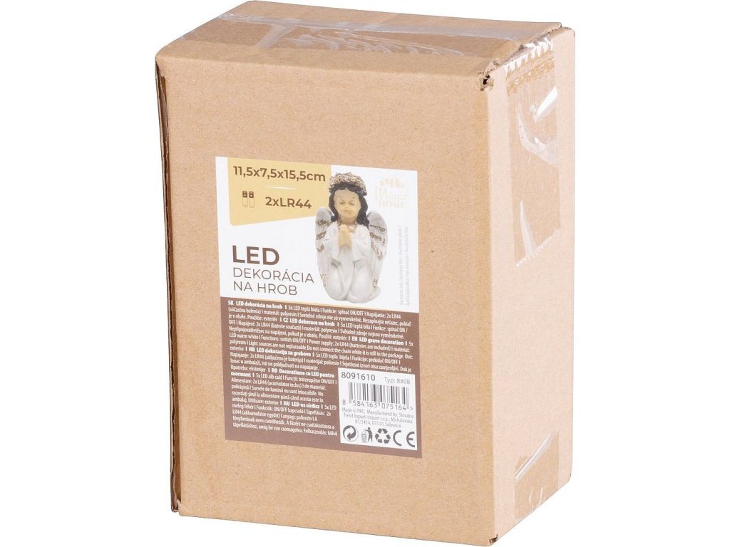 Dekorace Anděl modlicí, LED, polyresin, na hrob, 11,5x7,5x15,5 cm MagicHome
