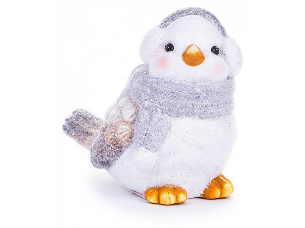 Dekorace MagicHome Ptáček sameček, šedá šála, terakota, 13,80x9x12,80cm