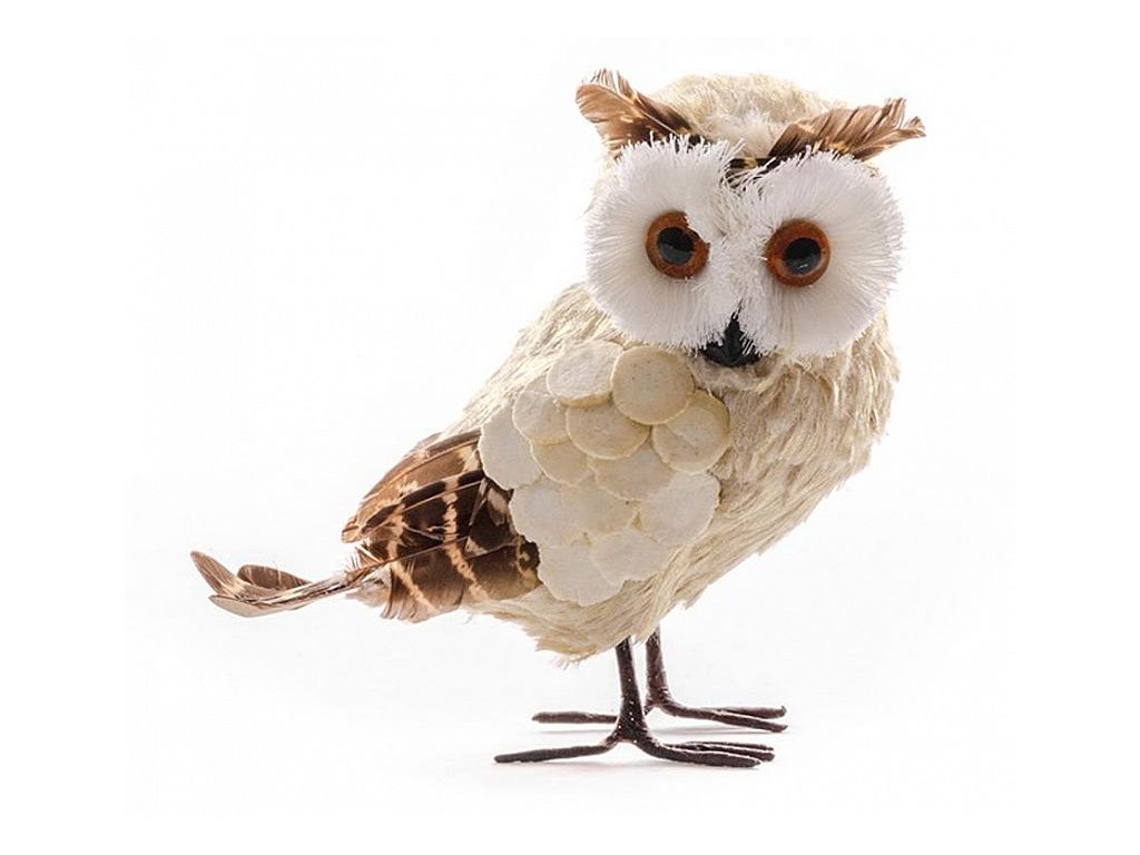 Dekorace MagicHome Sova krémová, péřová, 11x8x15cm
