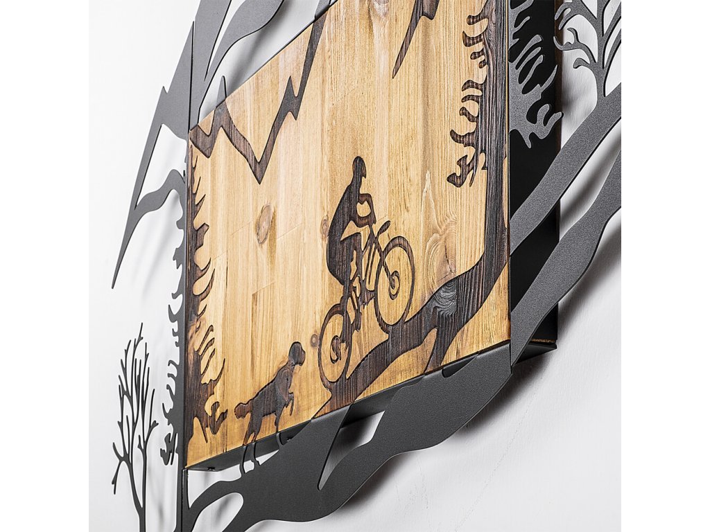 Dekorativní dřevěný nástěnný doplněk - jízda na kole v přírodě