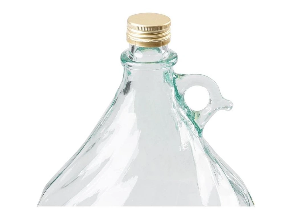 Jedná se o netvrzené sklo. Praktická rukojeť umístěná na hrdle láhve usnadňuje přenášení a nalévání tekutin, např. do sklenic.