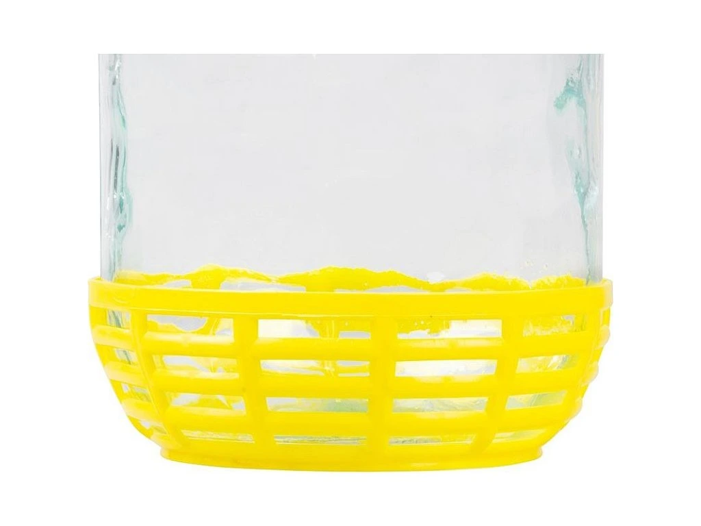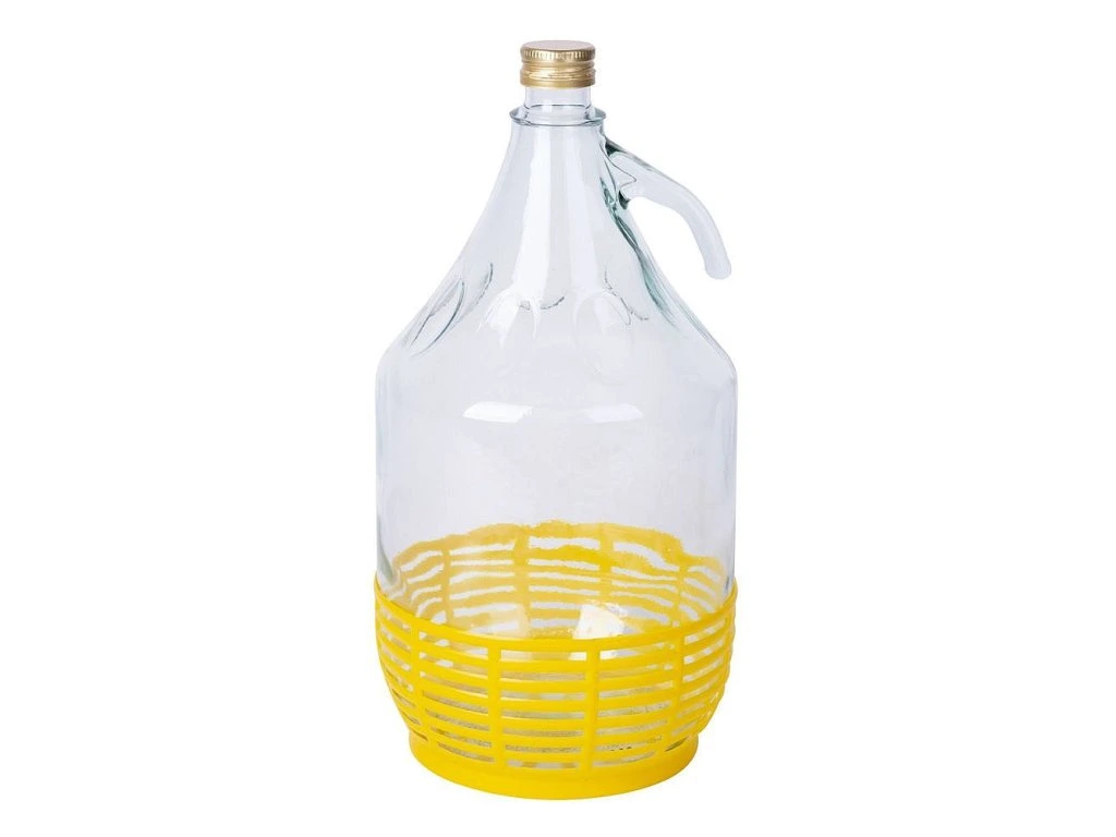 Plastový košík - demižon je chráněn odnímatelným žlutým plastovým košíkem, který chrání láhev před rozbitím a izoluje ji od země.