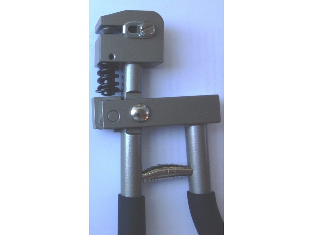 - Hlava kleští je opatřena posuvnou zarážkou pro přesné nastavení požadované vzdálenosti od hrany vloženého materiálu k proděravění.