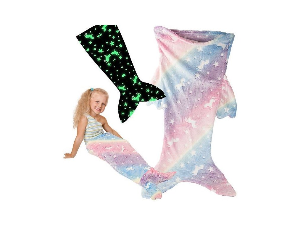 Dětská deka mořská panna svítící, s koňmi a hvězdami
