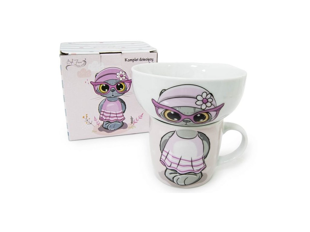 Dětská jídelní sada 2 díly, hrnek a miska KOTĚ