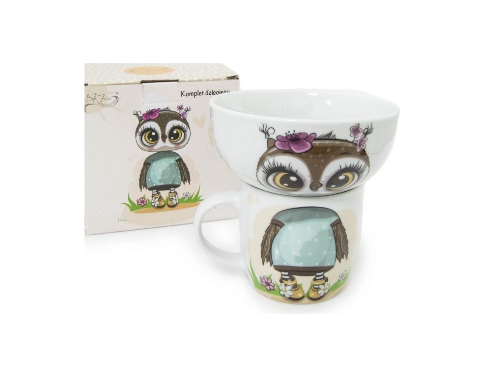 Dětská jídelní sada 2 díly, hrnek a miska SOVA