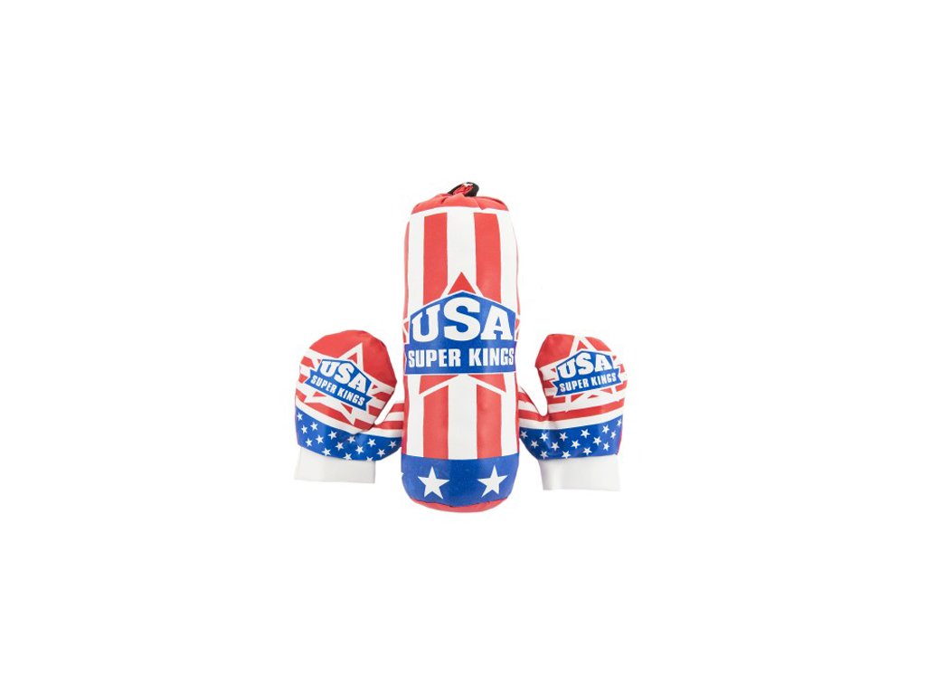 Dětský boxovací pytel a rukavice s motivem americké vlajky.