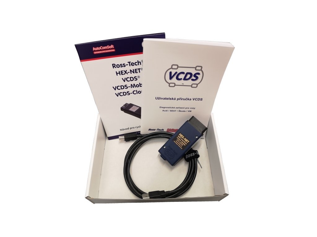 Set obsahuje program VCDS, VCDS Mobile (VCDS Mobile je zatím v angličtině, VCDS je plně v češtině), bezdrátový interface HEX-NET (podpora CAN-BUS a UDS), diagnostickou příručku VIS a on-line služby v aktuálních verzích. Celá sada je přehledně uložena v molitanové výplni.
