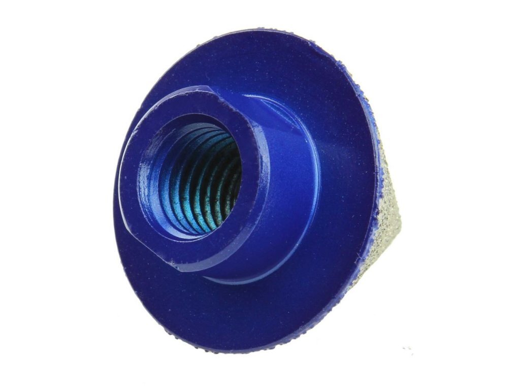 Diamantová fréza se závitem M14 pro upnutí do úhlové brusky, případně pomocí adaptéru do vrtačky, slouží k přesnému opracování materiálů a pro zvětšování otvorů v materiálech, jako je keramika, kámen, beton. Diamanty jsou umístěny na celé ploše frézy, což umožňuje vrtání do materiálů pod úhlem (max. sklon 20°).