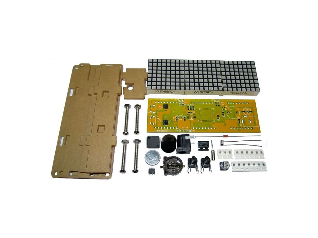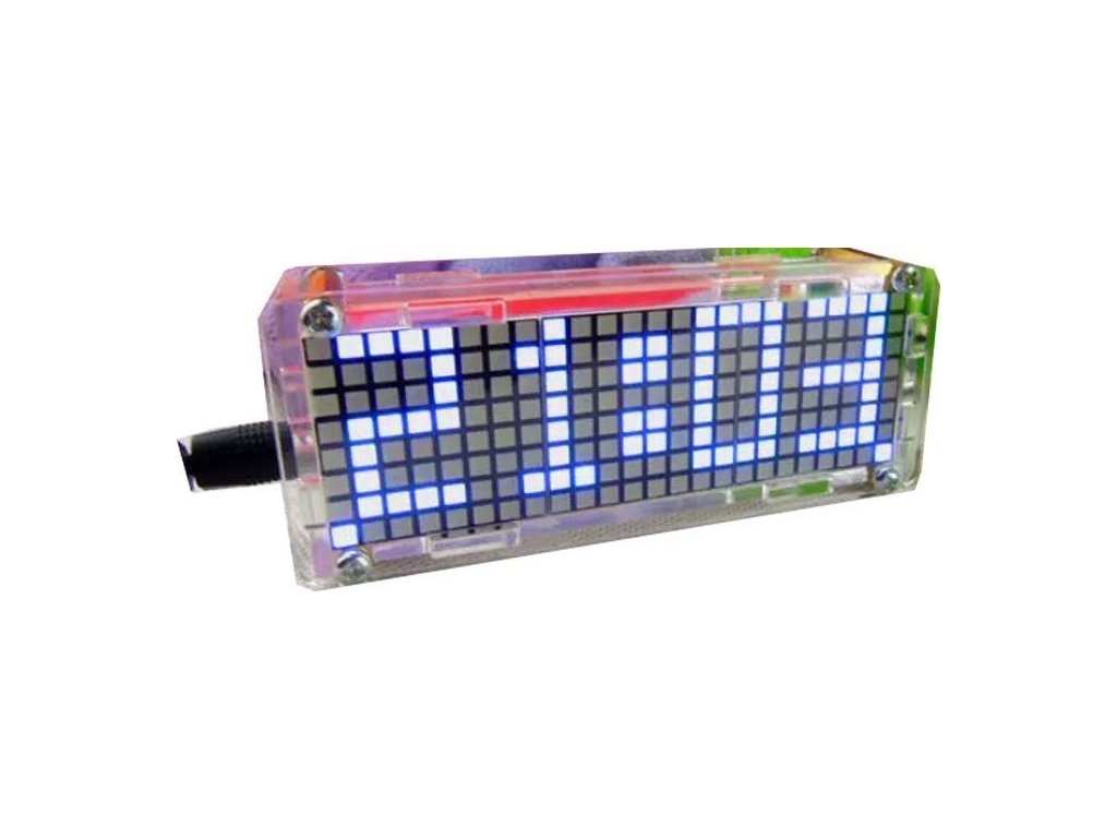 Digitální hodiny LED matrix s teploměrem - modré, STAVEBNICE Stavebnice představuje modul digitálních hodin, budíku a teploměru včetně plastové krabičky.Režim 24h, výška číslic: 25mm, řízeno krystalem 32798Hz.