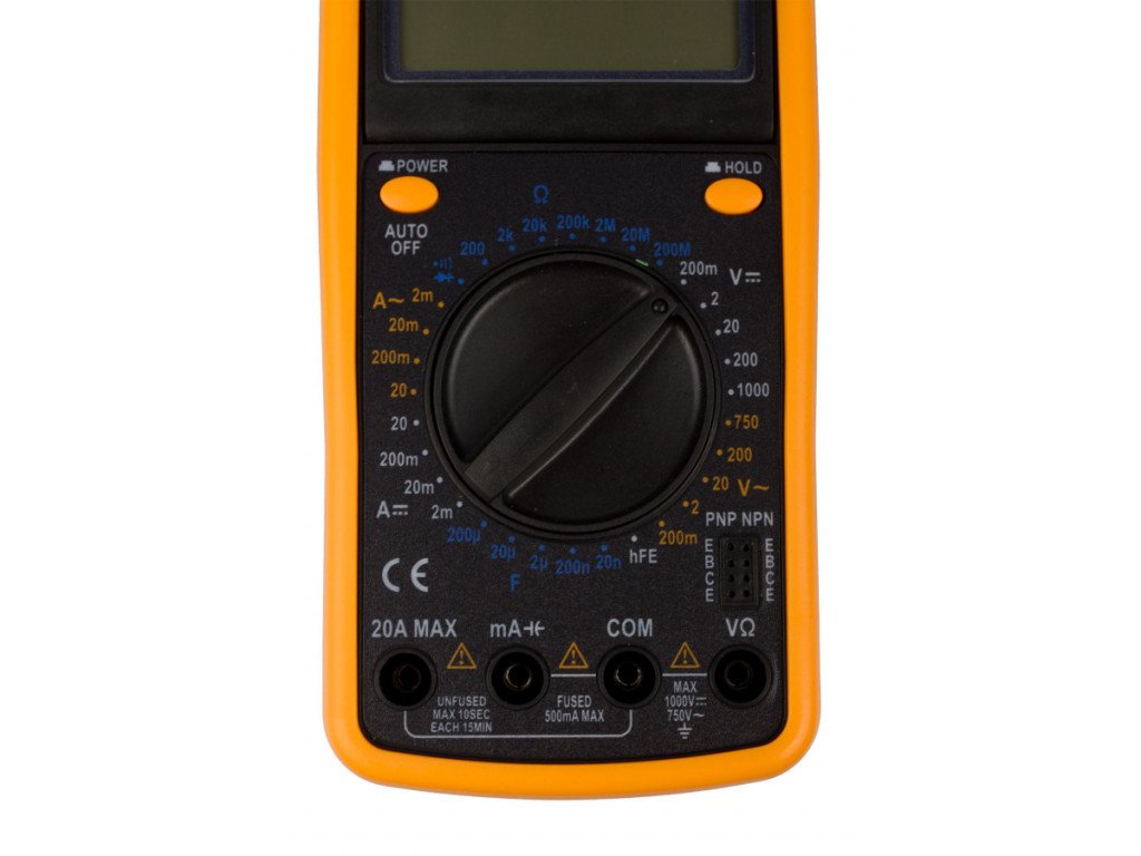 - Měří AC/DC proud, AC/DC napětí, odpor, tranzistor hFE test, test diod.