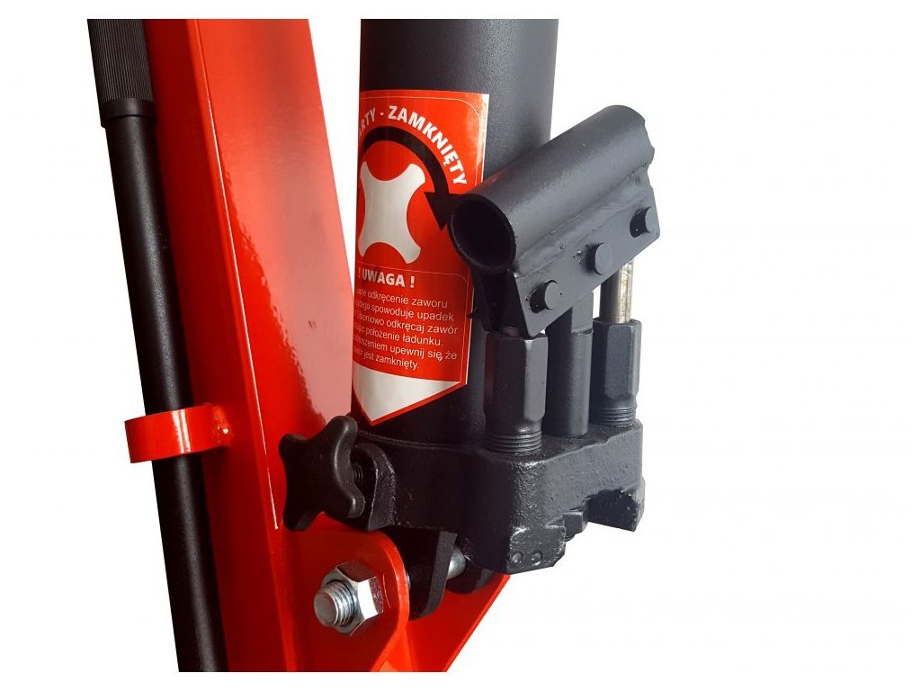 - zpětné spouštění břemen pootočením ventilu zvedací pákou, pojistný ventil jako garance bezpečné práce s těžkými náklady