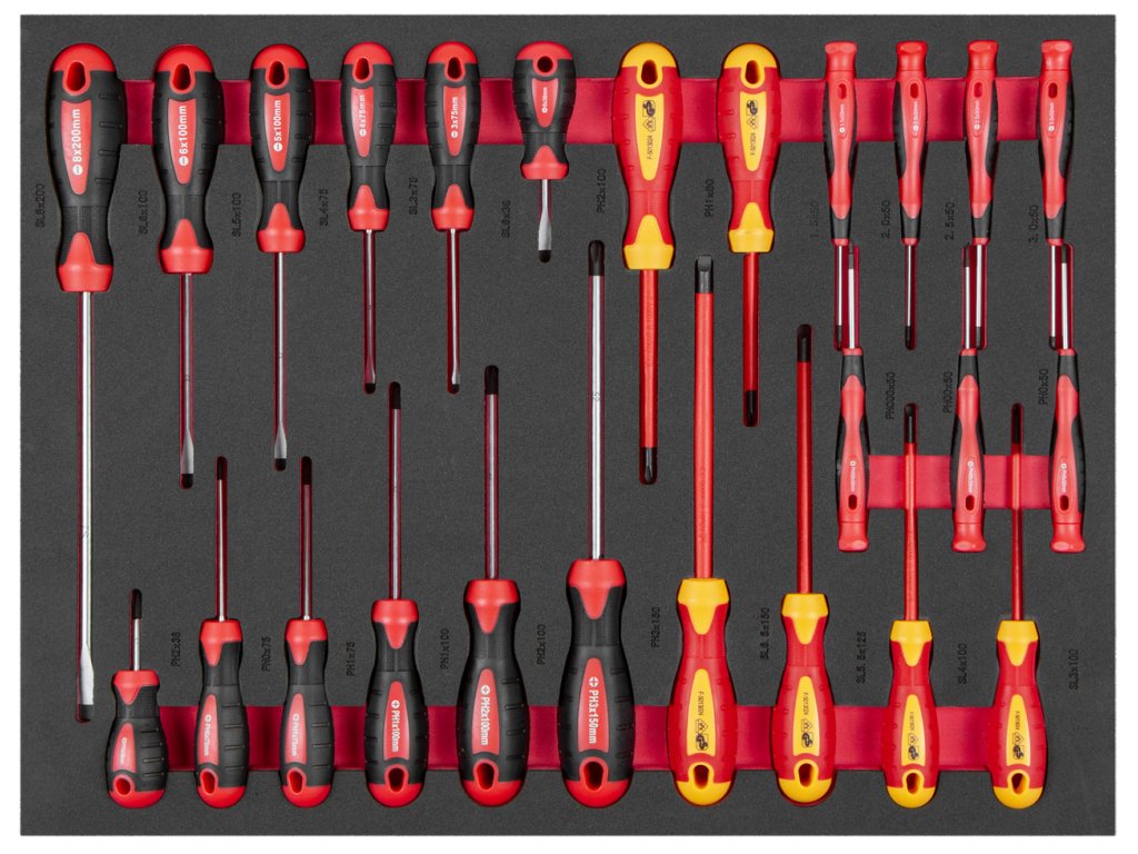 Výplně jsou navrženy tak, aby nářadí perfektně drželo na svém místě. To zajišťuje nejen přehlednost, ale také ochranu nástrojůběhem manipulace s vozíkem.