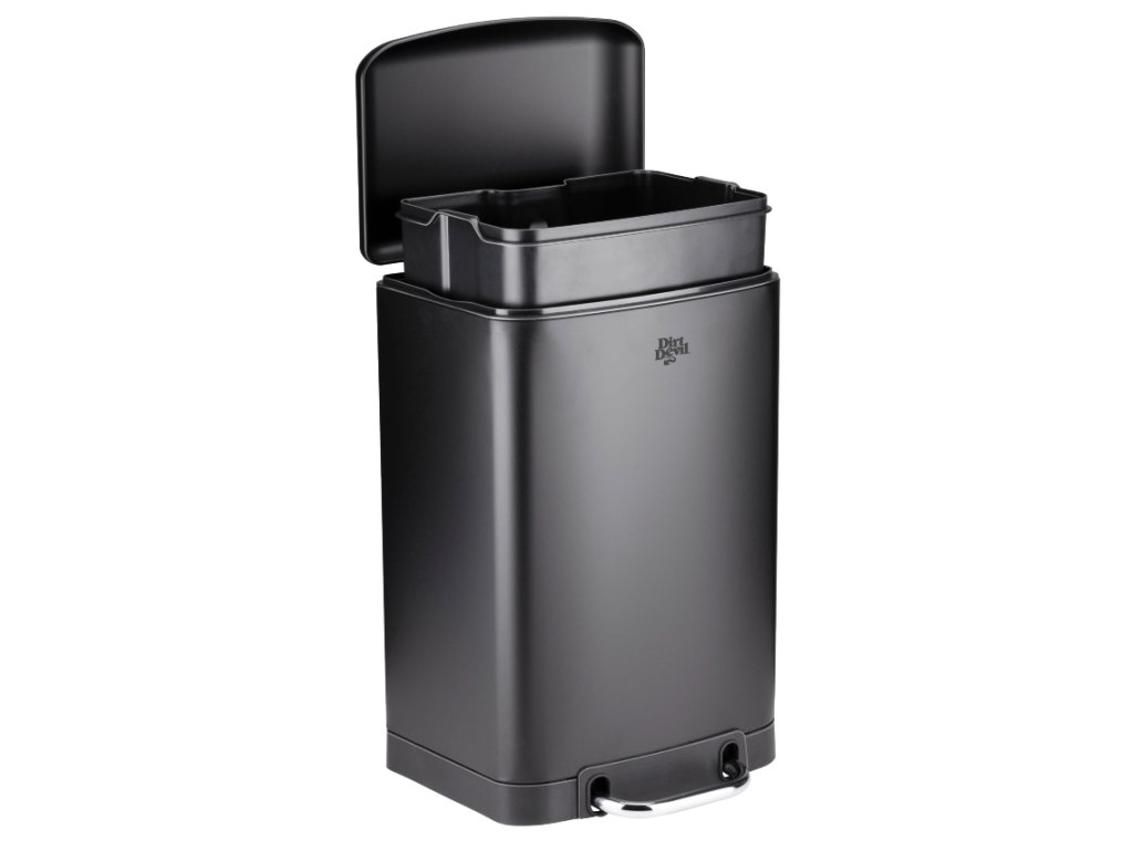 Neházejte své odpadky jen tak někam, dejte je do tohoto prostorného pedálového koše Dirt Devil o objemu 12 litrů. Kbelík vyrobený z odolné černé nerezové oceli se perfektně hodí téměř do každého interiéru a je vhodný pro použití v kuchyni, koupelně nebo kanceláři. Díky praktickému nožnímu pedálu ve spodní části kbelíku otevřete víko, aniž byste se ho dotkli. Pedálový koš je také vybaven mechanismem soft-close, díky kterému je otevírání a zavírání víka nehlučné a zabraňuje úniku nepříjemných pachů z koše. Robustní černá nádoba z nerezové oceli odolá každodennímu používání a snadno se čistí. Vyprazdňování pedálových košů je velmi jednoduché: vyjměte vnitřní koš, zlikvidujte odpad a znovu vložte vnitřní koš.Specifikace Dirt Devil Soft Close pedálový koš 12L