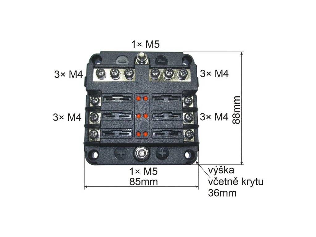 Distribuční blok - 6 pojistek, kladný i záporný pól /pojistkový držák/Doplňkové parametry