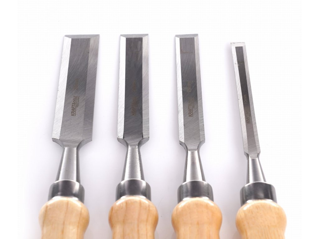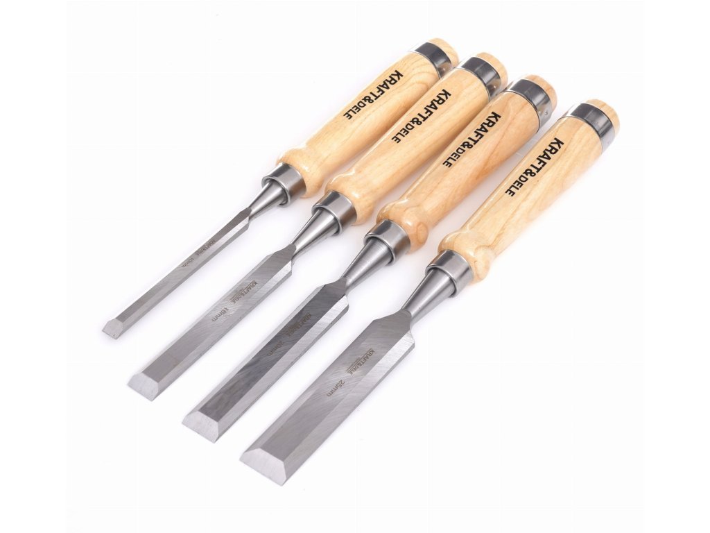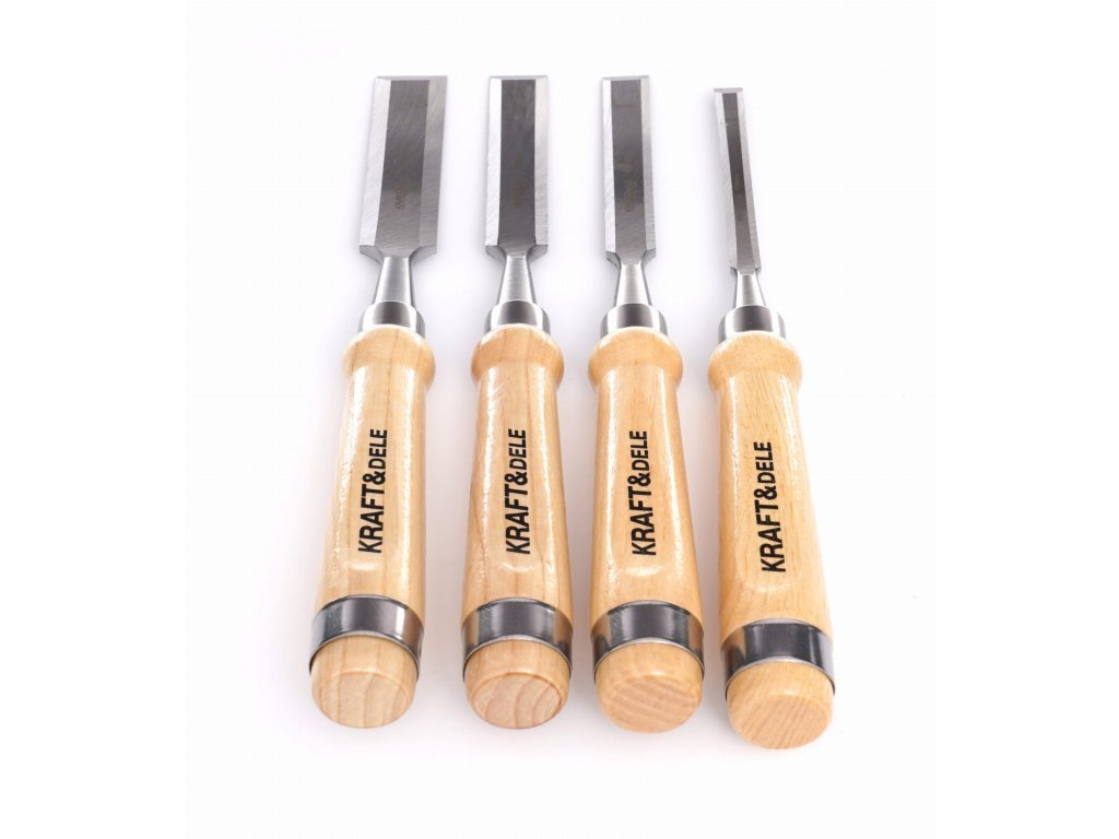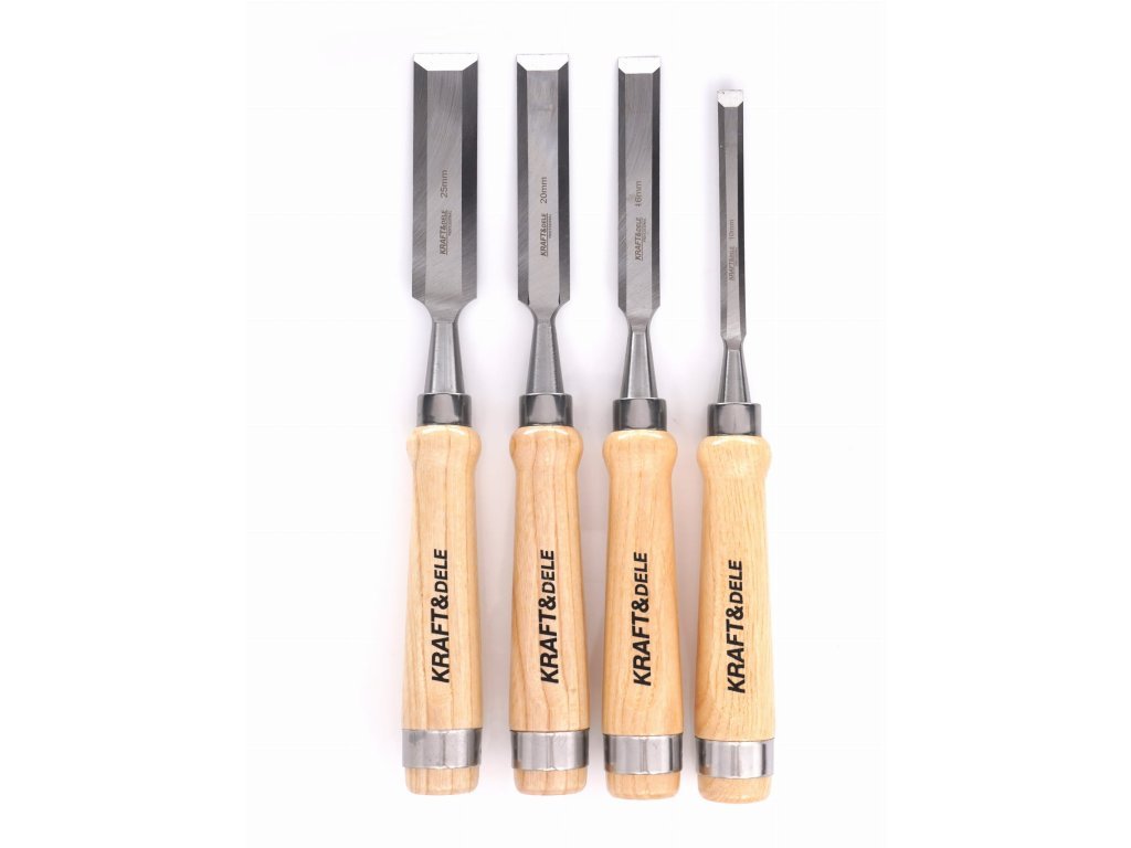 Dláta na dřevo 10-25 mm, dřevěná rukojeť, sada 4 ks - KRAFT&DELE