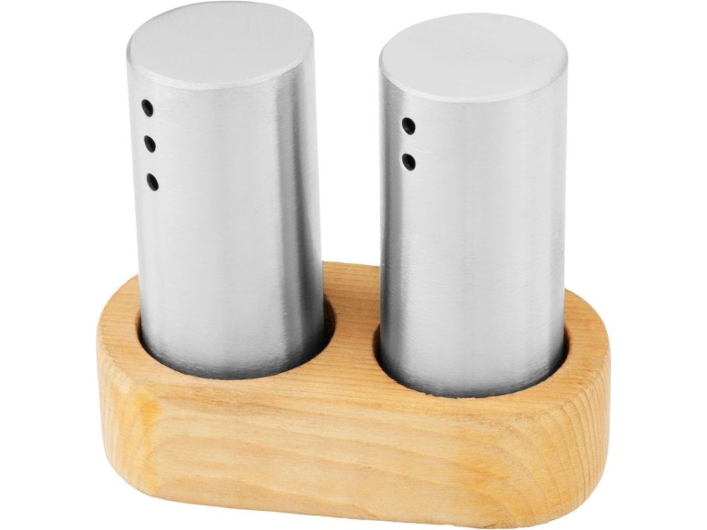 Praktická a elegantní sada pro každou kuchyni.Slánka a pepřenka MagicHome přicházejí v kombinaci nerezových nádobek a dřevěného stojanu, který dodává soupravě přírodní šarm a moderní vzhled.