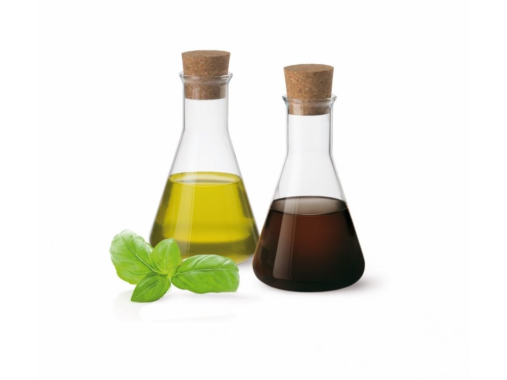 Sada 2 lahviček na olej a ocet o objemu 250 ml.Průměr 85 mm a výška 15.5 cm.